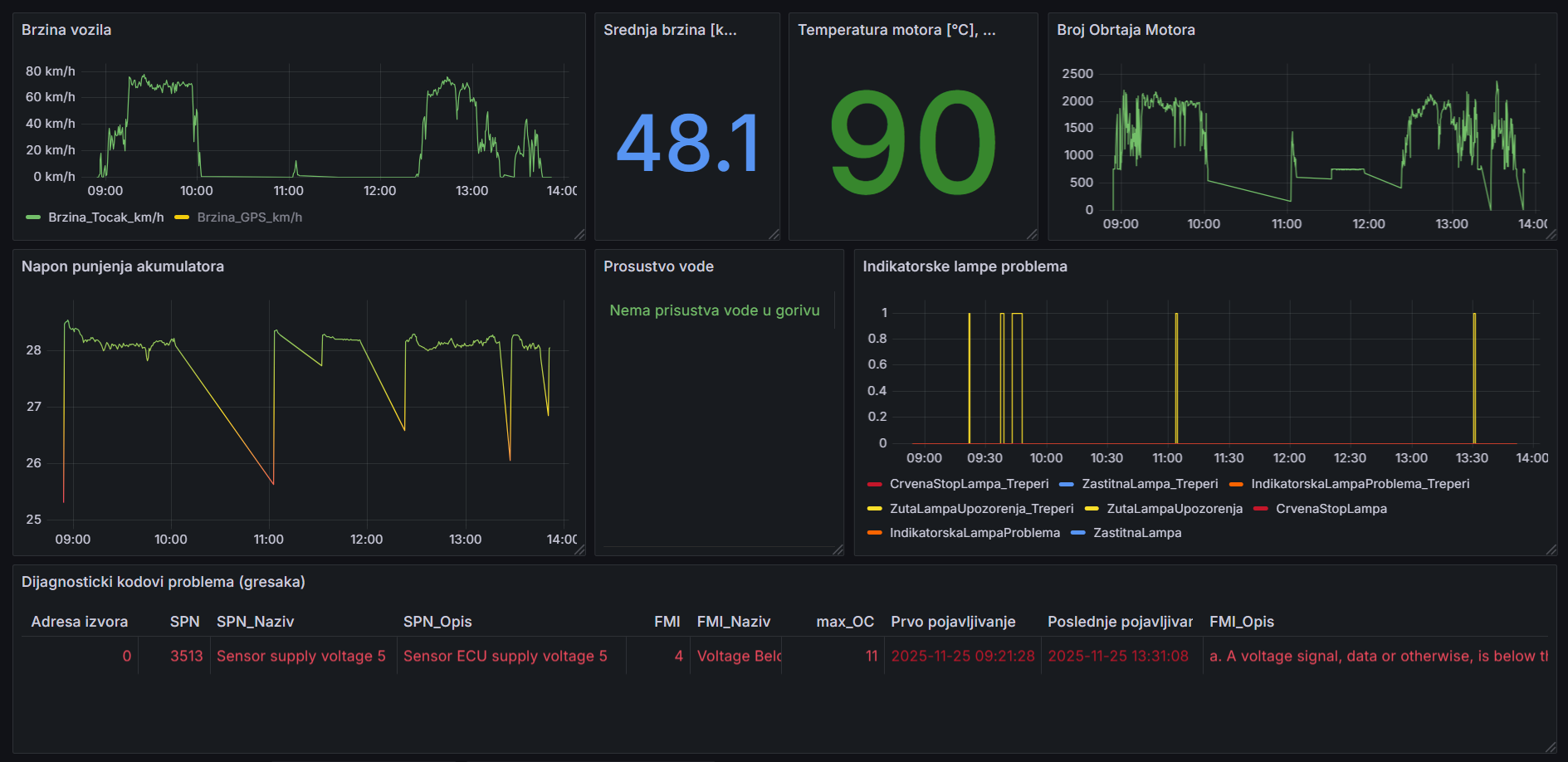 Podaci sa elektronskih upravljačkih jedinica: brzina, pređeni put, razne temperature i pritisci, potrošnja goriva, …